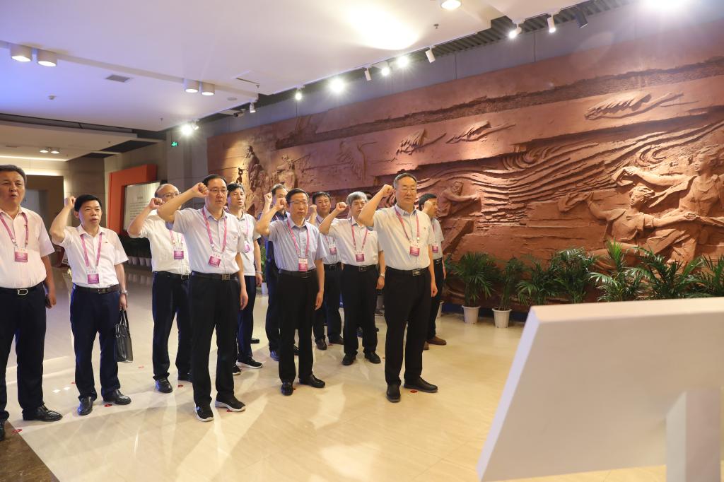在焦裕禄同志纪念馆,一件件饱经沧桑的物品,一幅幅真实生动的图片,一段段感人至深的故事,再现了焦裕禄同志牢记宗旨、心系群众,勤俭节约、艰苦创业,廉洁奉公、勤政为民的动人场景。王文鹏带领中心组成员在鲜红的党旗前庄重温入党誓词,庄严宣誓。在焦裕禄纪念园,中心组成员拜谒瞻仰焦陵,向焦裕禄烈士陵墓敬献花篮,集体向焦裕禄烈士墓碑三鞠躬,怀着崇敬心情绕陵缓行,深切缅怀党的好干部焦裕禄同志。
