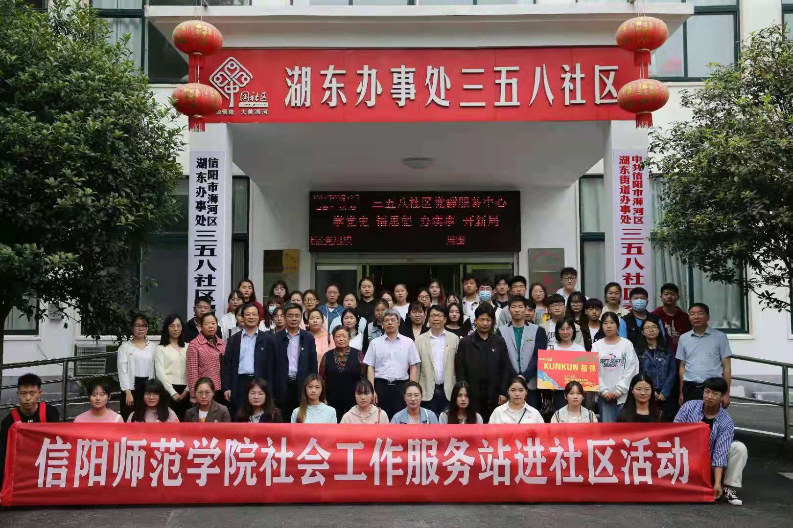 忆往昔峥嵘岁月稠,看今朝重任在肩头。为庆祝建党一百周年,让党史学习往深里走、往实里走、往心里走,5月12日,信阳师范学院社会工作服务站在信阳市浉河区三五八社区开展“传承军工精神,助力课程实践,回应社区需求”主题党日活动。校长李俊以普通党员身份参加活动。法社学院党政负责人、社会工作专业党员师生、入党积极分子以及青年志愿者60余人参加活动。