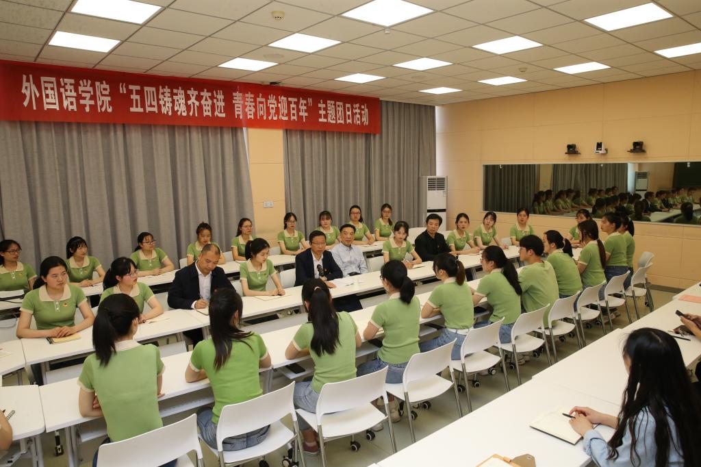 4月30日,外国语学院2018级英语1班在人文楼603教室举办“五四铸魂齐奋进 青春向党迎百年”主题团日活动。校党委副书记郜火星应邀出席活动。校团委和外国语学院负责人参加了活动。活动由班级团支部书记钱瑜主持。