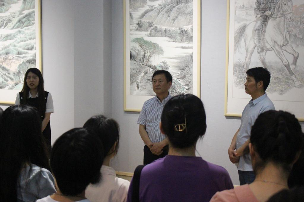 思政课前,陈登报和美术与设计学院部分师生在艺术楼展厅一起听取了该院青年教师明政现场讲述的红色故事:“不屈忠魂留青山”——毛国兴的革命故事。