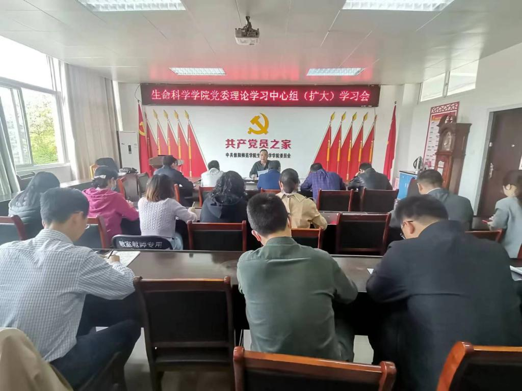 4月19日上午,生命科学学院党委召开党委理论中心组(扩大)学习会,生命科学学院党委中心组成员、党支部书记、系主任和全体科级干部参加会议。会议由生命科学学院党委书记李刚主持。